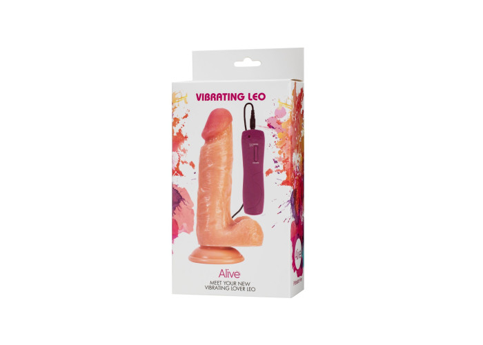 У нашому магазині ви можете придбати фалоімітатор реалістік з вібрацією Alive Vibrating Leo. Він має середні розміри (загальна довжина 17 см, довжина, яка вводиться 12,5 см, діаметр 3,8 см) і виготовлений з приємного на дотик PVC-матеріалу. Також він може похвалитися потужним моторчиком з 10 режимами вібрації. Він знаходиться посередині стовбура, завдяки чому вібрація рівномірно поширюється по всій довжині ствола. Дана модель виглядає дуже реалістично: яскраво виражена рожева голівка, горбисті вени, складочки, зморшки, велика мошонка. Завдяки потужній присосці фалоімітатор можна зручно використовувати без допомоги рук.