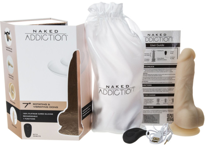 Чудова багатофункціональна іграшка для глибокого задоволення вашої пристрасті! Пропонуємо купити фалоімітатор з вібрацією та ротацією Naked ADDICTION James 7″: він не тільки потужно вібрує й обертається на 360° в 7 режимах (обидва мотори можуть працювати й синхронно, й автономно), але ще й надійно кріпиться до будь-якої гладенької поверхні та підходить до більшості ременів для страпона. Реалістична текстура, приємний та зносостійкий силікон преміальної якості, автономне керування вібрацією та ротацією — у ньому є все, щоб полетіти до країни еротичних фантазій. Додатковий бонус — пульт дистанційного керування в комплекті забезпечує комфортне перемикання режимів прямо в процесі!