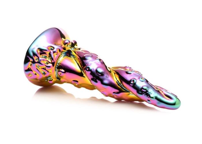 Фентезійний скляний фалоімітатор Creature Cocks Enchanting Rainbow Glass Dildo — ідеальне поєднання чарівного дизайну, натхненного морським кракеном, та преміального боросилікатного скла. Справжній скарб колекції!
