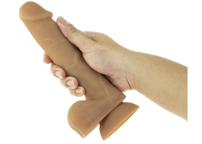 реалістичне виконання: вени, головка, яєчка та карамельний колір підкреслюють натуралістичність фалоімітатора;
