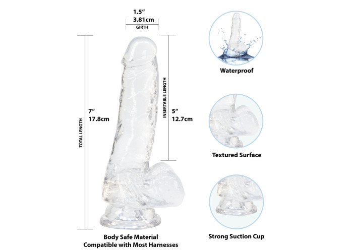 Прозорий фалоімітатор ADDICTION — Clear Dildo with Balls простий в очищенні та прослужить вам довгий час. Віброкуля працює від батарейок, батарейка в комплекті.