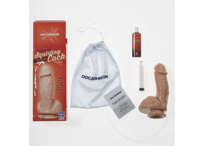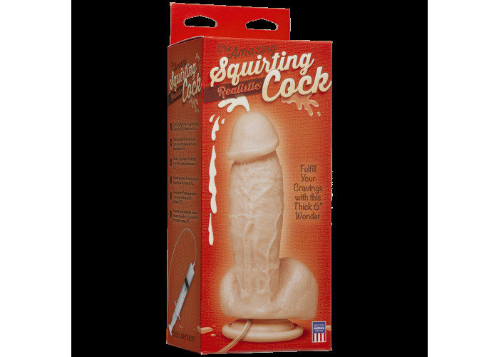 Кінчающий фалоімітатор Doc Johnson The Amazing Squirting Realistic Cock - це реалістичний фалоімітатор, який є унікальним в усіх відношеннях. По-перше, реалістичний дизайн, натуральний колір, матеріал на дотик нагадує живе тіло. Ерегований товстий стовбур з рельєфними прожилками, голівка як у реального пеніса, підібгана мошонка - все це точна копія статевого члена чоловіка. Крім того, найвидатнішою особливістю цього реалістика є те, що він може імітувати сім'явиверження! Присоска дозволяє кріпити його до різних поверхонь, залишаючи руки вільними.