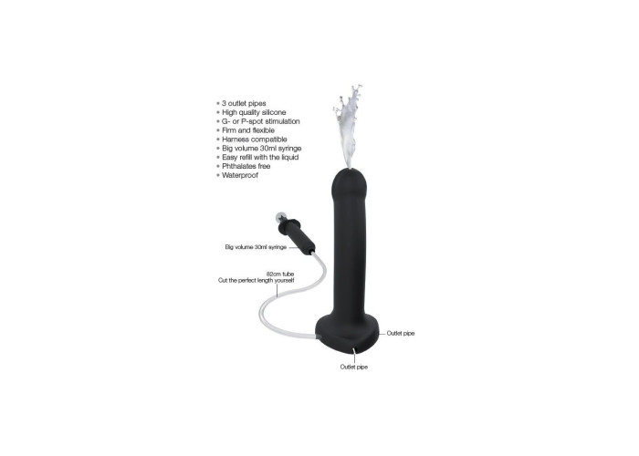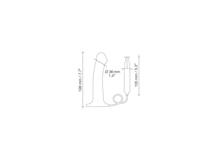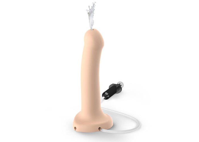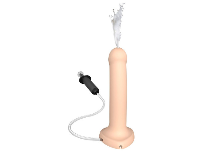 Легко гнеться в будь-яку сторону і, головне, може кінчати практично по-справжньому! Для цього передбачено 'шприц' об'ємом 30 мл, з'єднаний з тілом фалоімітатора спеціальної трубочкою. Довжина трубочки 82 см і для її кріплення передбачено 3 виїмки на підставі ділдо - така конфігурація дозволяє зручно зафіксувати її, щоб вона не заважало в процесі і тримати 'шприц' весь час під рукою. В якості еякуляту ідеально підійде мастило Creamy (купується окремо) - вона схожа на сперму і зовні, і по консистенції, так що ефект буде максимальний.