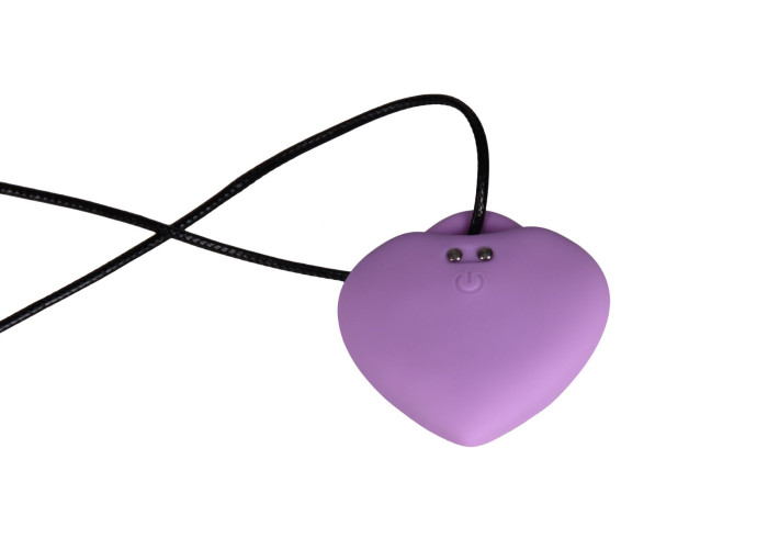 незвичайне дизайнерське рішення для вібратора: сердечко-кулон на шнурку, шнурок оснащений металевою регульованою застібкою;