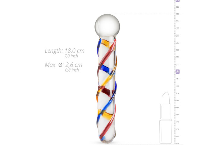 Бажаєте доповнити свою колекцію іграшок для дорослих чимось незвичайним? Рекомендуємо придбати скляний ділдо Gildo Glass Dildo No.10, декорований опуклими кольоровими смужками. Виглядає такий ділдо досить екзотично і дозволяє експериментувати як з будь-якими видами лубрикантів, так і з температурою, нагріваючи або охолоджуючи скло. Міцний і безпечний.