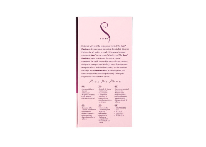 Віброкуля Swan Maximum — це вишукане джерело фізичного та естетичного задоволення, яке завжди буде під рукою. З цією кулею можна провести чудовий вечір наодинці з собою або додати чуттєвості побаченню. Дійте, як підкаже фантазія, а віброкуля Swan Maximum не підведе!