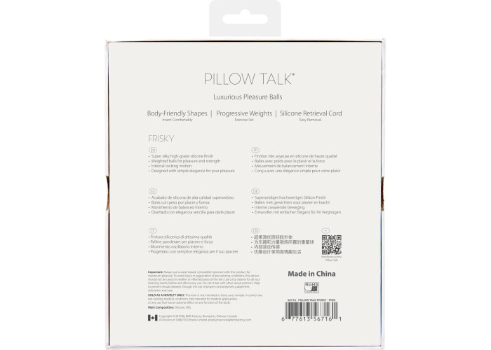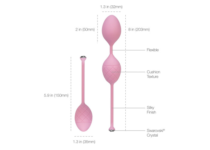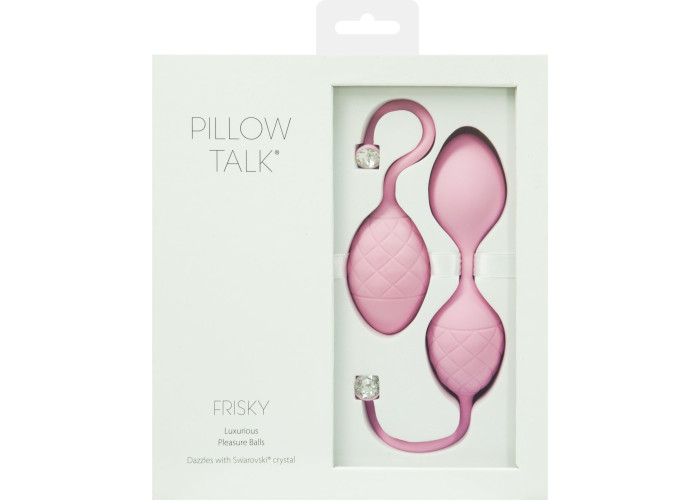 Щоб підвищити своє сексуальне задоволення і зміцнити вагінальні м'язи, рекомендуємо купити розкішні вагінальні кульки Pillow Talk - Frisky Pink з кристалами Swarovski. Шикарний шовковистий силікон і сліпучі кристали Сваровскі роблять кульки не просто корисним девайсом, а й лакшері-аксесуаром. Набір з одинарних і подвійних кульок зі зміщеним центром ваги, дозволяє ретельно опрацювати глибокі м'язи. Кульки різного розміру для максимальної ефективності.