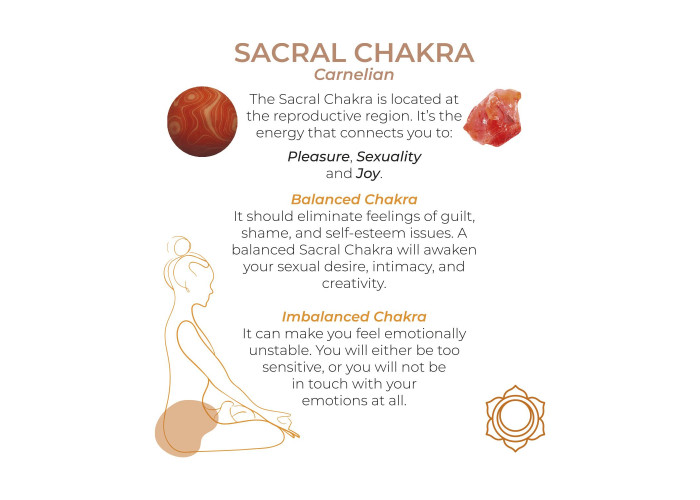 Сердолік — камінь насичено жовтого або жовто-червоного відтінку, відповідає за сакральну чакру та сексуальне бажання, пробуджує інтимність та творчість. Маса 38 г.