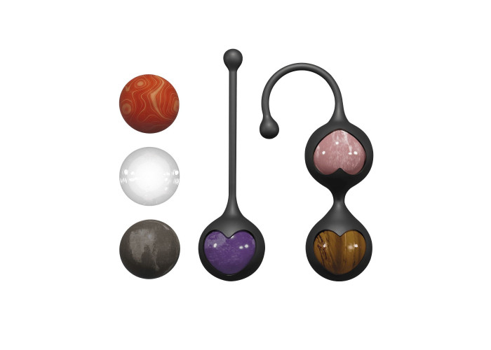 Якщо ви шукаєте щось більше, ніж стандартні вагінальні кульки для вправ Кегеля, і хочете поєднати тренування з медитацією, рекомендуємо купити вагінальні кульки Adrien Lastic Harmony Stones. Це унікальний комплект, у якому є 6 кульок із напівдорогоцінного каміння і два тримачі — одинарний і подвійний. Кульки не просто мають приголомшливий вигляд, а й трохи відрізняються за масою для різного навантаження, а головне, покликані збалансувати енергетичні центри, поліпшити фізичне та емоційне благополуччя, принести спокій та впевненість у собі. Усе завдяки особливим властивостям напівдорогоцінного каміння! У комплекті кульки з аметисту, рожевого нефриту, тигрового ока, сердоліку, кристалу та цілющого китайського каменю Бянь.