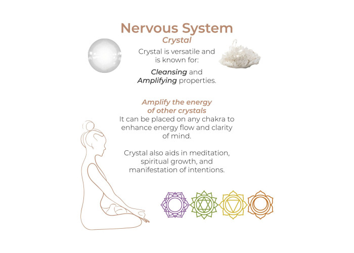 Камінь-кристал — повністю прозорий. Він гармонізує нервову систему, надає ясності розуму, допомагає в медитації та сприяє духовному зростанню. Найлегша кулька, її маса 31 г.