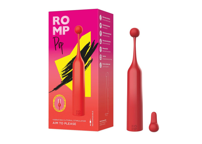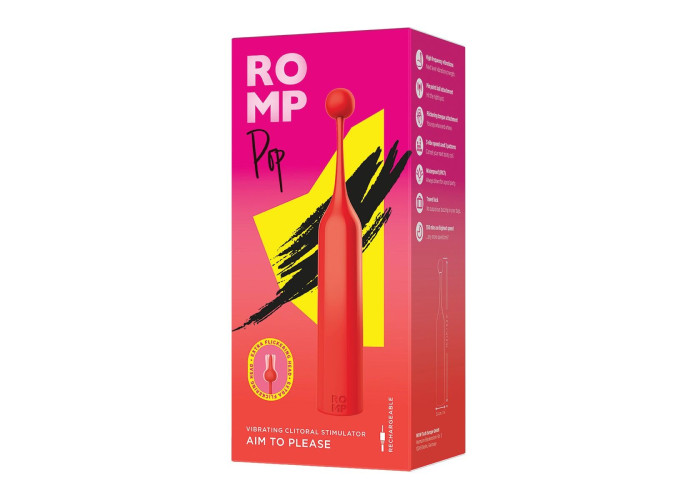 ROMP Pop — це високочастотний універсальний стимулятор клітора для універсальної гри. Він спеціально створений для максимально спрямованої стимуляції. Більш інтенсивні відчуття або більш м’які — вибирати вам! Підходить також і для стимуляції будь-яких інших ерогенних зон як у неї, так і в нього — так що з ним можна грати й у парі.