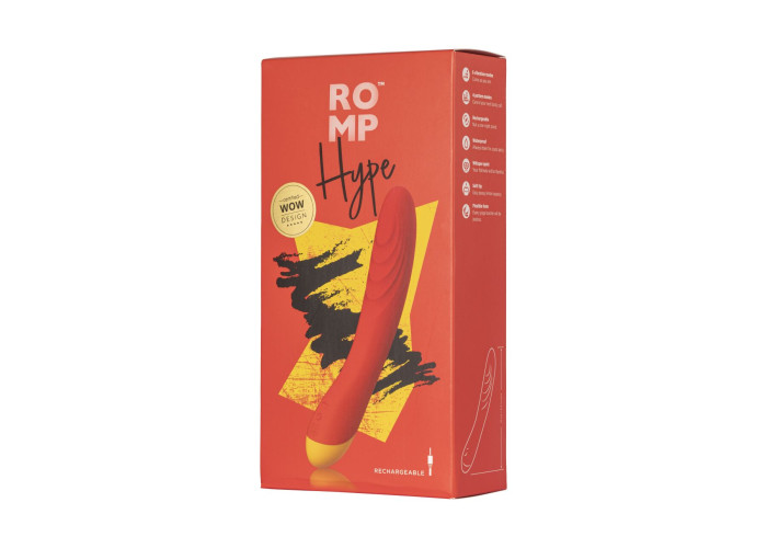 Комплектація: вібратор для точки G та клітора Romp Hype, USB-кабель для заряджання (адаптер змінного струму не входить до комплекту), короткий посібник та інструкції з безпеки.
