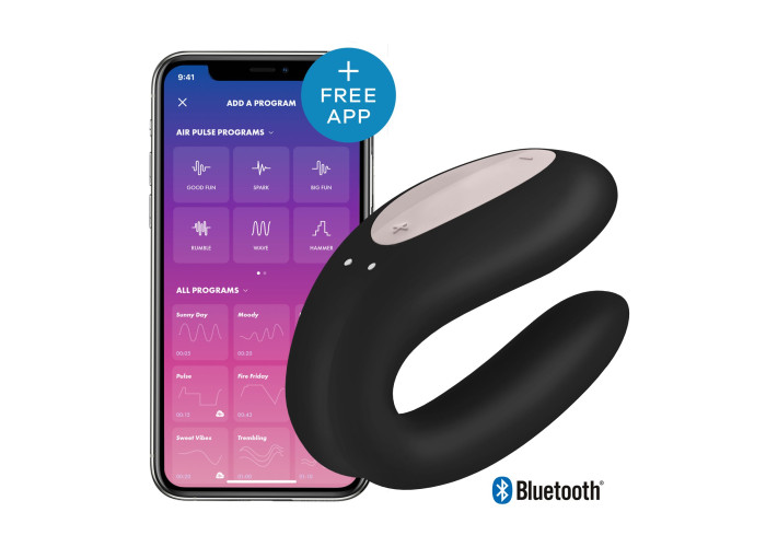 Найкраще рішення для пар, які цінують різноманітність, і для тих, хто тимчасово опинився далеко один від одного! Купити вібратор для пар Satisfyer Double Joy Black — це означає, відчути максимальну близькість у будь-якій точці світу, і повністю поринути у відчуття, коли ви поряд. Два мотори, вібрації в 10 режимах без смартфона та в нескінченній кількості режимів під час під’єднання до смартфона, неймовірна гнучкість та просте керування роблять цей вібратор одним із найкращих партнерських гаджетів. У вашому розпорядженні безліч віброрежимів, створення власних патернів, синхронізація з музикою, голосове керування та доступ до ритмічних малюнків, створених іншими — усе для реалізації фантазій.