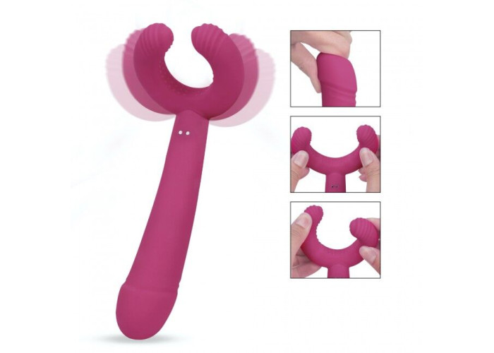 - Закріпивши кільце на пенісі, ручку можна зігнути для подвійного проникнення. Вібруватимуть всі частини іграшки, то ж подвійне задоволення отримають обидва учасники процесу!