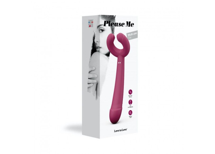 Ідеальний спосіб отримати надзадоволення — це використовувати вібратор для пар Love To Love PLEASE ME. Він виготовлений з м'якого силікону, текстурованого в місцях, що вібрують, для додаткових відчуттів. Вібратор дуже гнучкий, три двигуни розміщені в кінцях іграшки. Вібратор управляється трьома кнопками: увімк./вимкн., перемикання режимів у стовбурі та перемикання режимів в обох кінцях кільця.