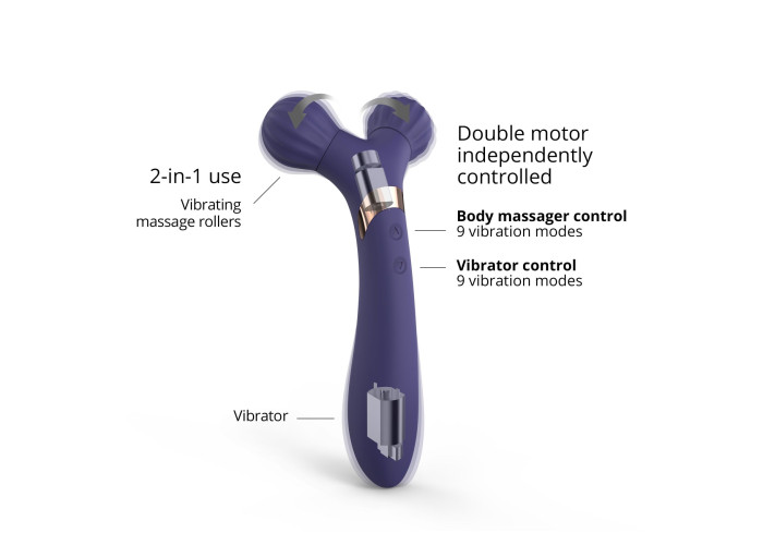 - 2 мотори — один у масажері, інший у вібраторі — керуються окремо;