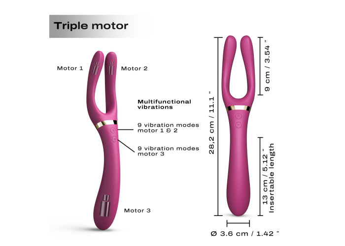 3 мотори: один у стовбурі і 2 у пальчиках, вібрації ввідної частини і пальчиків перемикаються окремо;