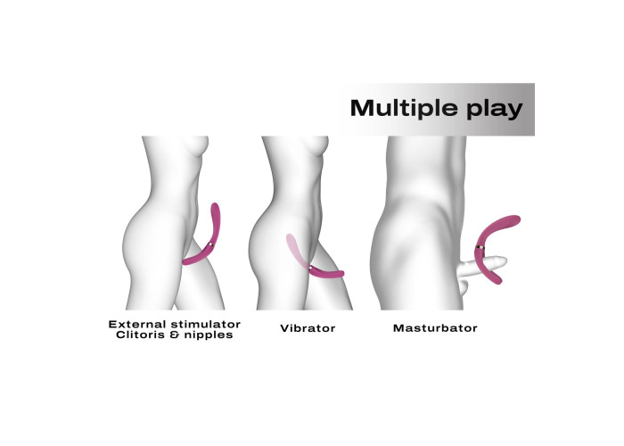 обидві сторони робочі: стовбур для внутрішньої стимуляції та гнучкі пальчики для різноманітних пестощів;