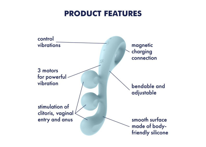 Пропонуємо купити універсальний вібратор Satisfyer Tri Ball 2 — гнучкий, оснащений трьома моторами, він створений, щоб ви змогли насолодитися стимуляцією всіх ерогенних зон. Три кульки на гнучкому стовбурі можна використовувати для анальної, вагінальної та кліторальної стимуляції одночасно або окремо. Працює у 10 потужних режимах вібрації та для кожного можна регулювати інтенсивність (5 рівнів). Повністю водонепроникний!