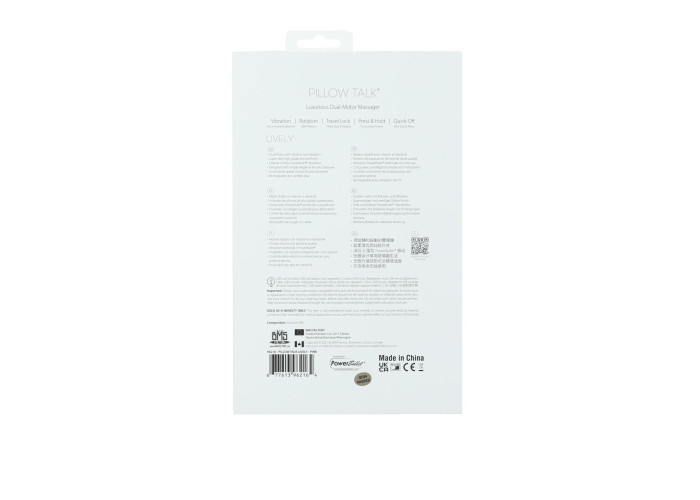 Розкішний кролик з ротацією та вібрацією Pillow Talk Lively виготовлений з абсолютно безпечних високоякісних матеріалів. Зверніть увагу: кролик не є водонепроникним, тому використовуйте для очищення спеціальні засоби.