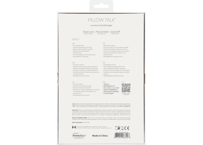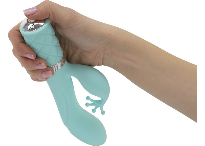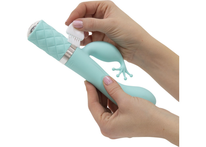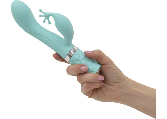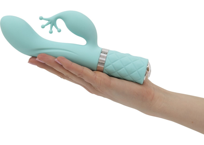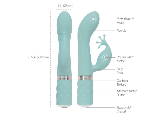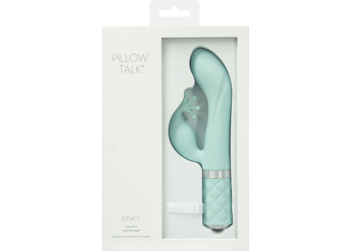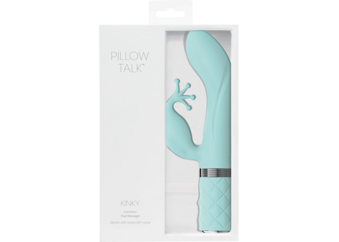 Пропонуємо купити розкішний вібратор Pillow Talk - Kinky Teal - абсолютно надзвичайну модель з двома моторами, яка здатна здивувати навіть самих просунутих цінительок вібраторів. Короноподобний гнучкий відросток буквально охопить ваш клітор ласками з усіх боків, а загнутий кінець вводиться частини буде ніжно (або інтенсивно - як ви захочете!) Стимулювати точку G. І довершує розкішну картину справжній кристал Swarovski, розташований на рукоятці вібратора.