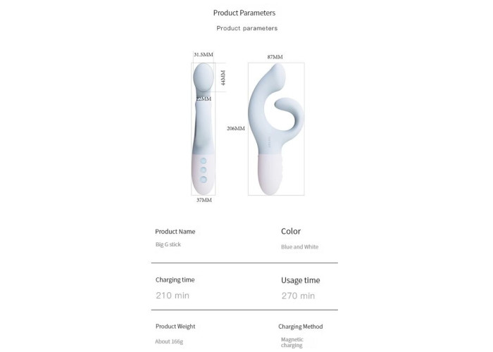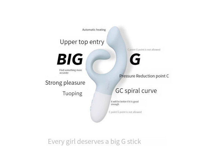 Абсолютно точне влучення! Пропонуємо купити вібратор-кролик для точки G KISTOY Big G — саме він змусить вас тремтіти від задоволення та стогнати від подвійних оргазмів. Адже він ідеально потрапляє на точку G і клітор, якими б у вас не були анатомічні особливості. Потужний мотор створює вібрації, які відчуваються і в стовбурі, й у відростку (5 режимів), і для кожного режиму можна регулювати інтенсивність (5 рівнів) — цілих 25 комбінацій для задоволення! Під час ввімкнення іграшки стовбур автоматично підігрівається до комфортної температури для ідеальних відчуттів під час введення. Вібратор повністю водонепроникний.