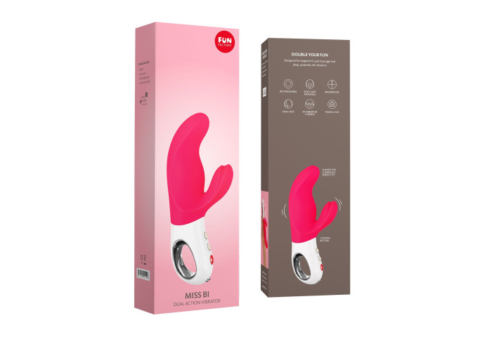 Вібратор-кролик Fun Factory MISS BI — це приголомшлива невелика іграшка для стовідсоткових оргазмів! Подвійна кліторально-вагінальна стимуляція — те, що потрібно для глибокої насолоди.