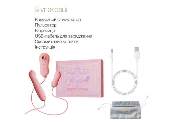 Зверніть увагу: пульсатор та віброяйце працюють тільки під час приєднання до вакуумного стимулятора. Після під’єднання ви можете вмикати як один девайс, так і обидва одночасно. Набір ідеально підходить і для відпочинку соло, і для приємних ігор у парі, адже ви можете використовувати дві іграшки одночасно!