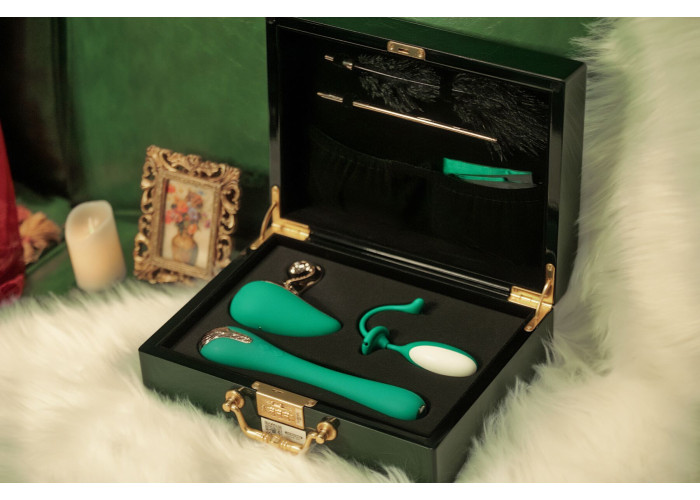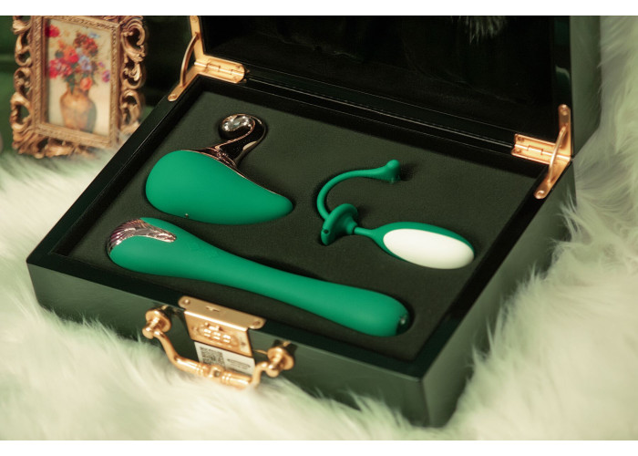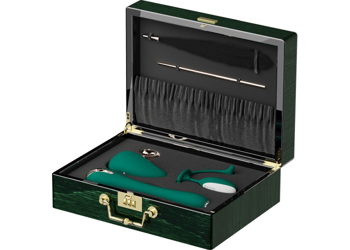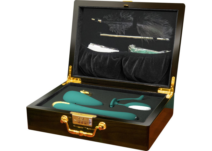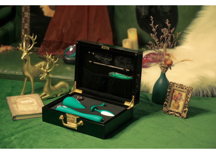 Розкіш, пристрасть, нові технології та море насолоди! Усе це ви отримаєте, якщо вирішите купити набір Knight Jenay Pandora Box, у якому є все необхідне для вишуканих задоволень і рольових ігор. Вакуумний вібратор SOUL & DESIRE у вигляді лебедя — одна з візитних карток бренду Knight Jenay, іграшка для вібростимуляції будь-яких ерогенних зон та вакуумних пестощів клітора та сосків. Вібратор з камерою True & Pure l дає змогу не тільки насолоджуватися глибокою вагінальною стимуляцією, але й детально оглядати все всередині, записувати відео та робити фото. Смарт-віброяйце Cetus із сенсором тиску — ідеальний девайс для тренувань Кегеля в ігровій формі (у застосунку доступні справжні онлайн-ігри). Також у комплекті — атласна стрічка на очі або для ніжної фіксації рук та пір’їнка-лоскітка зі знімною металевою ручкою. І все це акуратно укладено в неймовірно шикарний кейс-валізку під поліроване дерево з кодовим замком. Кейс додатково запаковано в розкішний атласний чохол смарагдового відтінку. Це справжній скарб для нескінченних еротичних пригод! Такий набір оцінять навіть найвибагливіші поціновувачі витончених пестощів та любителі інноваційних іграшок.