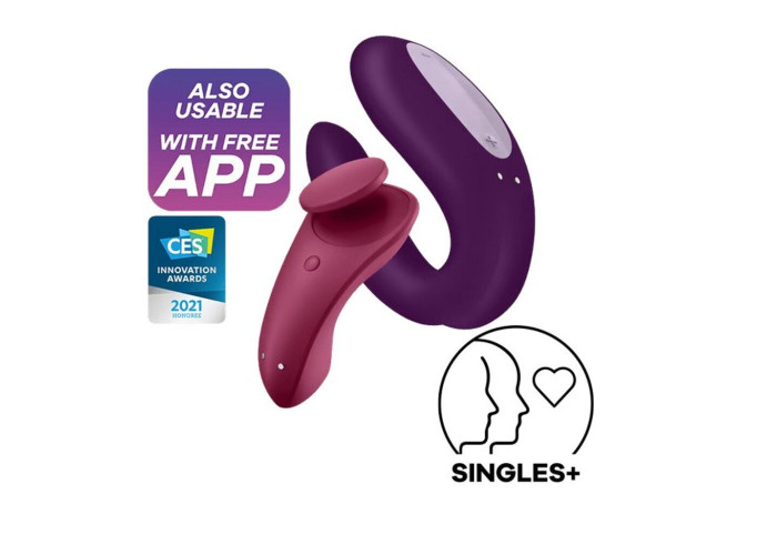 Смарт-вібратор для пар Satisfyer Double Joy — простий у використанні вібратор для пар. У цій моделі виробник, відповідно до відгуків та побажань клієнтів, зробив кліторальну частину особливо широкою, щоб під час фрикцій контакт з клітором не губився і задоволення не переривалося. Крім того, він: