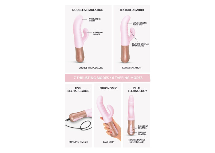 Задовольнить навіть найвибагливіших і найпросунутіших! Пропонуємо купити подвійний пульсатор-кролик Love To Love SASSY BUNNY — унікальний кролик із пульсацією і в стовбурі, й у відростку! Один потужний мотор забезпечує шикарну стимуляцію клітора в 6 режимах, ніби наполегливий пальчик швидко-швидко постукує по заповітній перлині. Другий — стимулює точку G (у 7 режимах) рухами вперед-назад. Мотори працюють повністю незалежно та керуються окремо. Додаткові мікровідростки на кліторальній частині зроблять відчуття ще багатшими! Зручний, комфортний та технологічний.