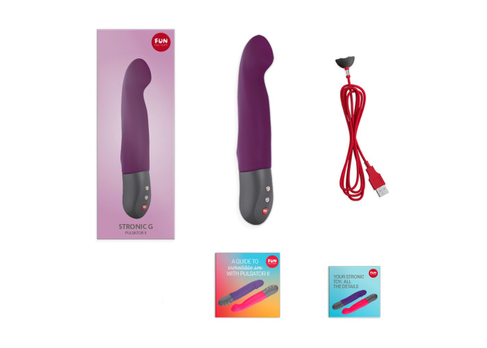 Пульсатор для точки G Fun Factory STRONIC G FORTE відповідає найвищим вимогам до якості та функціональності. У комплекті з ним ви отримаєте USB-кабель для заряджання, посібник користувача з усією важливою інформацією, ідеї для еротичних ігор і навіть сексуальну гру «Flirt or Dare» для гарячої прелюдії.