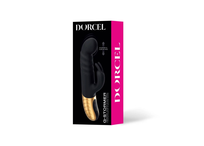 Пропонуємо придбати вібратор DORCEL - G-STORMER з особливим лінійним двигуном, який забезпечує рухи вібратора вгору-вниз. Особлива форма з сильним вигином на кінці забезпечує максимальну стимуляцію точки G, а відросток-кролик буде стимулювати клітор з потрібною вам інтенсивністю, так як передбачено 10 варіантів вібрації. 7 швидкостей двигуна віднесуть вас на 7 небо завдяки запаморочливим рухам вгору-вниз!