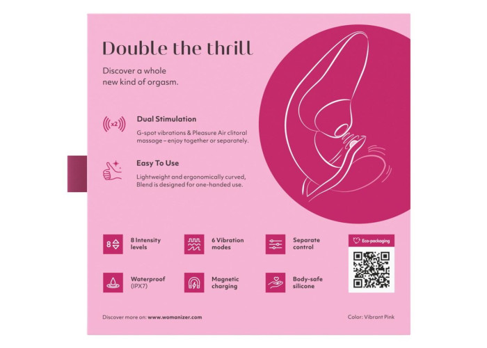 Вагінально-кліторальний стимулятор Womanizer Blend Vibrant — це ідеальний девайс для змішаних оргазмів, який точно підлаштовується під вашу анатомію і принесе небувалу насолоду.