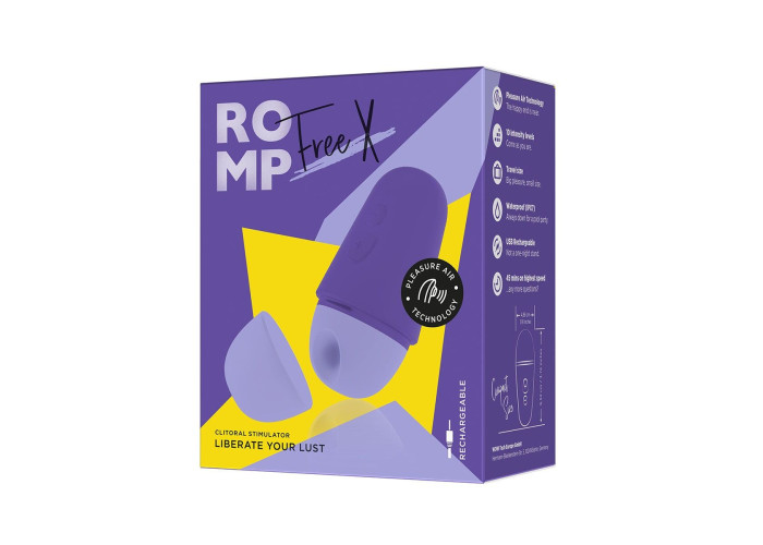 Якщо вам потрібен вірний супутник у поїздках та подорожах, рекомендуємо купити вакуумний кліторальний стимулятор Romp Free X — оновлену модель стимулятора Romp Free. Більш компактний, в оновленому стильному корпусі, з більш зручною кришечкою, але все з тим же фантастичним вакуумом. Стимулятор працює за технологією Pleasure Air Technology™ — безконтактний вплив на клітор повітряними хвилями приносить ні з чим незрівнянні відчуття! Ви самі можете регулювати інтенсивність вакууму (є 10 рівнів) за допомогою двох зручних кнопок. Компактні розміри (9,5×4,9 см), надійна кришечка та повна водонепроникність (IPX7) роблять цю іграшку ідеальним компаньйоном, куди б ви не вирушили!