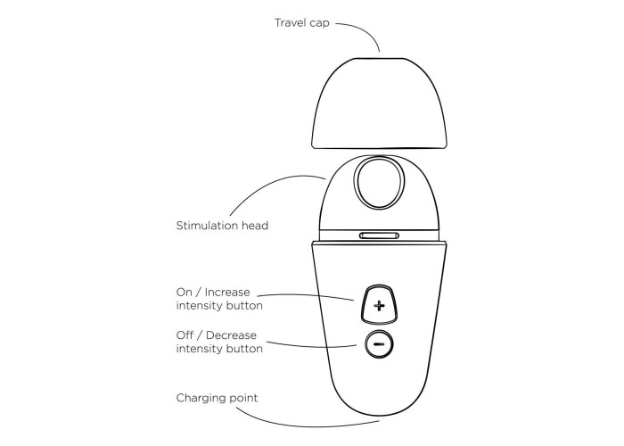 розтруб особливої форми: поглиблення для клітора має трохи скошений край і розміщено нарівні з поверхнею головки іграшки, завдяки чому стимулятор зручно використовувати як самостійно, так і під час близькості;