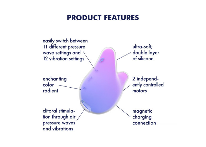 Представляємо неймовірно гарну та функціональну іграшку — переможця German Design award 2025 року! Пропонуємо купити вакуумний кліторальний стимулятор з вібрацією Satisfyer Mermaid Vibes, натхненний спокусливими русалками. Покритий двома шарами силікону, у трендовому градієнтному відтінку, дуже зручний — цей стимулятор підходить для пестощів буквально будь-якої точки тіла! Використовуйте роздвоєний хвостик для точкової стимуляції, округлий корпус — для пестощів великих зон, а розтруб — для фантастичної вакуумної стимуляції клітора та сосків. Працює у 12 режимах вібрації та на 11 рівнях вакууму, мотори повністю незалежні. Іграшка водонепроникна (IPX7) для особливо приємних водних процедур.