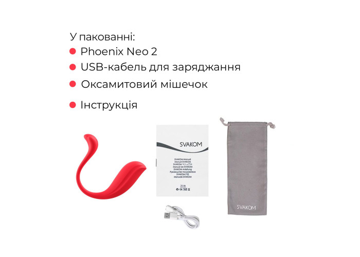 Інтерактивне віброяйце Svakom Phoenix Neo 2 — це суперсучасний секс-гаджет, у якому поєднується ідеальна форма та продумана функціональність. Усе для вашого задоволення! До комплекту входить USB-кабель для заряджання та посібник користувача.