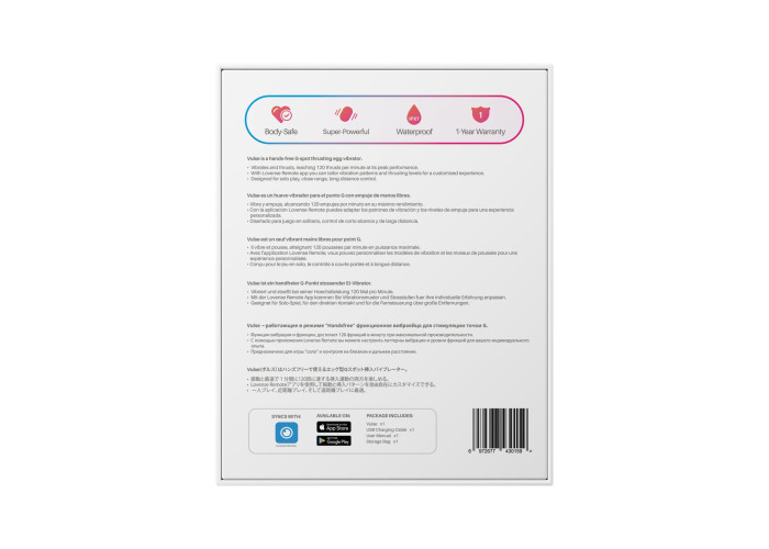 Віброяйце, що носиться, яке не тільки вібрує, а й дуже реалістично імітує фрикції? Lovense втілив найнеймовірніші мрії! Пропонуємо купити смарт-віброяйце з пульсацією Lovense Vulse, яке переверне ваше уявлення про насолоду. Це перший вібратор, що носиться, для точки G, який також імітує фрикції! Легко керується зі смартфона та сумісний відразу з трьома мобільними застосунками (Lovense Remote, VibeMate та Tophy), кожен з яких слугує для своїх цілей. Без під’єднання до смартфона працює в 3 режимах вібрації та 4 режимах пульсації. Швидкість фрикцій — до 120 поступальних рухів на хвилину. Доволі легке — 82 г — воно ідеально підходить для ігор у публічних місцях та тривалого носіння. Віброяйце повністю водонепроникне, так що ним можна насолоджуватися й у ванні або навіть басейні!