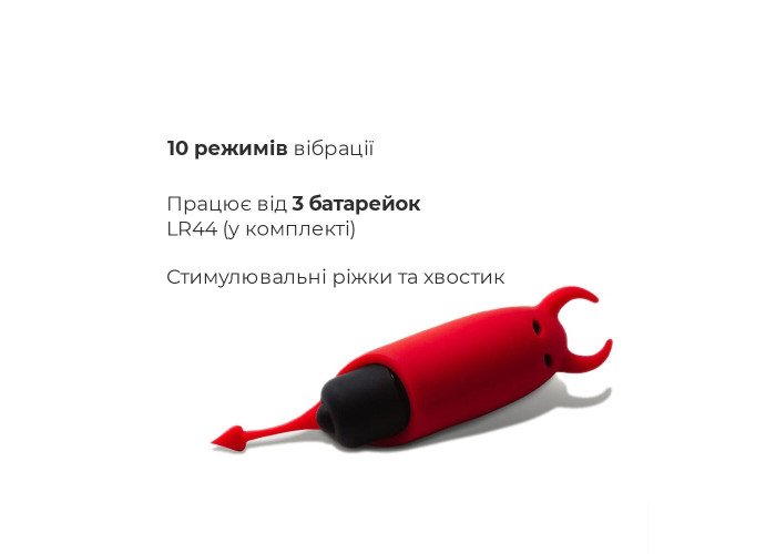 Пропонуємо придбати мінівібратор Lastic Pocket Vibe Devol - злісного порушника Вашого спокою і невтомного коханця! Цей шовковисто-гладкий милий маленький чортеня не заспокоїться, поки не доведе Вас до несамовитості. Його кумедний хвостик і симпатичні ріжки своєю вібрацією змусять Вас стогнати!