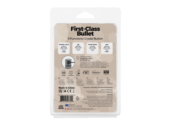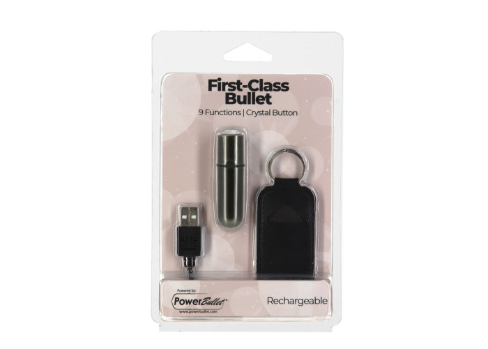 Лаконічна розкіш класичної конічної форми з гарною матовою металевою текстурою та мерехтливим кристалом в основі — усе це нова віброкуля First-Class Bullet від бренду PowerBullet. Порадує вас і 100 % водозахист, завдяки якому ви можете сміливо грати з кулею у ванній, джакузі або басейні.