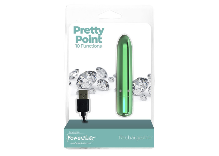 Гламурна віброкуля PowerBullet - Pretty Point Rechargeable Bullet Teal, прикрашена поясом кристалів, створена спеціально для насолоди. Глибокі та рокотливі вібрації PowerBullet, які варіюються від м'яких до найінтенсивніших, здатні привести вас до кульмінації за лічені хвилини. При цьому, маючи справді дуже потужну силу, двигун іграшки працює практично безшумно. Віброкуля підходить для стимуляції будь-яких ерогенних зон, для сольних та парних ігор, для клітора та для сосків. Все обмежене лише вашою фантазією.