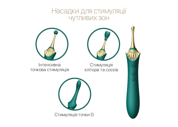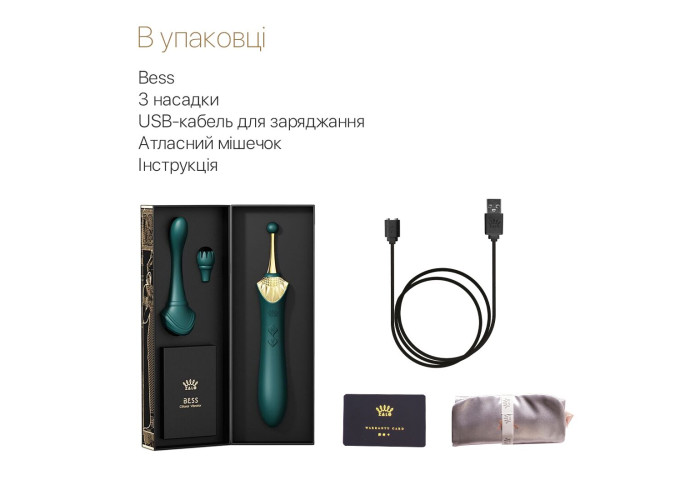 Разом із вагінально-кліторальним вібратором Zalo — Bess ви отримаєте три насадки, які ідеально підійдуть для впливу на улюблені ерогенні зони.
