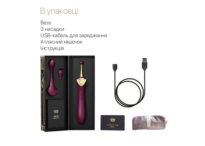 Разом із вагінально-кліторальним вібратором Zalo — Bess ви отримаєте три насадки, які ідеально підійдуть для впливу на улюблені ерогенні зони.