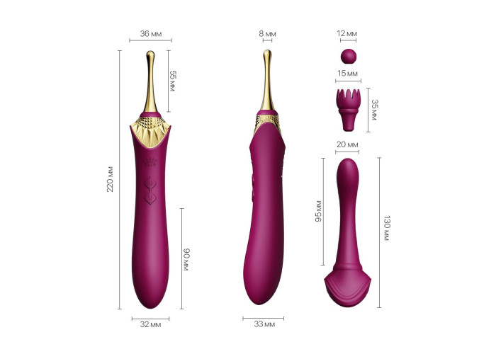 незвичайна форма: тонка частина для точкової стимуляції клітора — з одного боку, і ширша, схожа на класичний вібратор — з іншого;