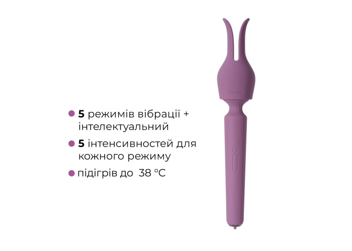 Підігрів до 38 °С, 5 режимів вібрації з регулюванням інтенсивності (по 5 для кожного режиму), а також знімна головка з гнучкими вушками надихнуть вас на нові еротичні переживання. Незвичайне LED-підсвічування для настрою: чим вища інтенсивність вібрації, тим яскравіше горить індикатор! Вібромасажером можна керувати зі смартфона, можна передавати керування на відстані, створювати в застосунку власні режими та багато іншого.