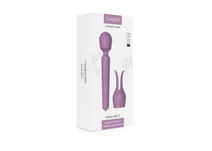 Пропонуємо купити інтерактивний вібромасажер із підігрівом Svakom Emma Neo 2 — оновлену модель популярного вібратора Emma Neo. Ще більш потужний, більш зручний, з додатковим інтелектуальним режимом, цей вібромасажер швидко завоює ваше серце! Оновлена форма класичного ванд-масажера дає змогу зручно масажувати будь-які ділянки тіла та стимулювати улюблені ерогенні зони.