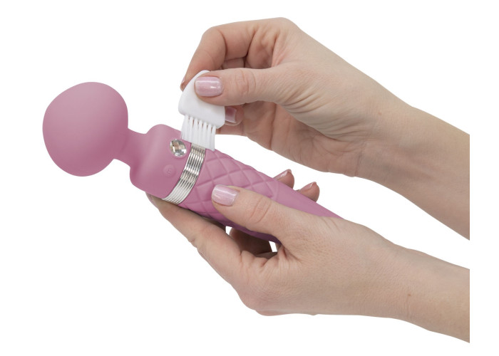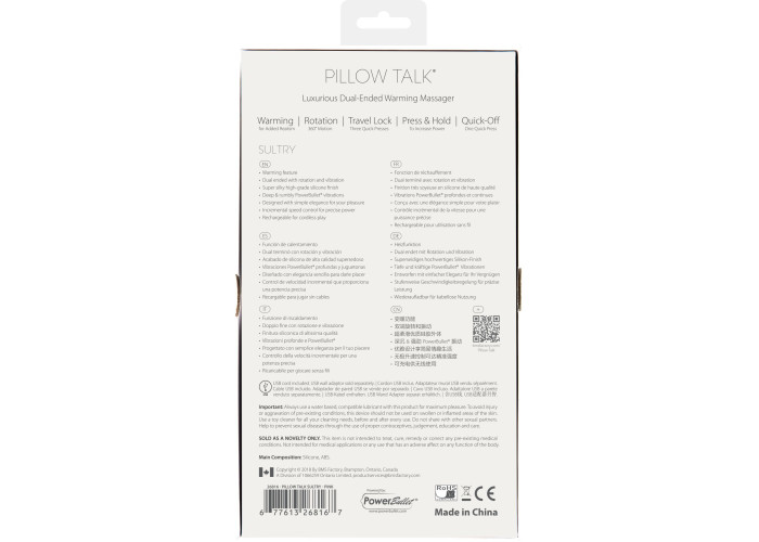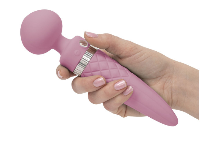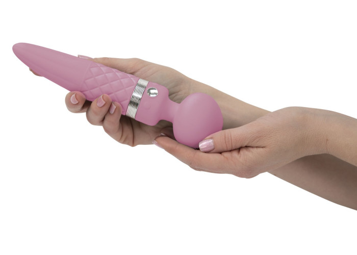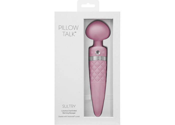 Пропонуємо купити вібромасажер PILLOW TALK - Sultry Pink - розкішний масажер поліпшеної форми з функцією нагріву і гарною прикрасою - справжнім кристалом Swarovski. Елегантний дизайн, зручне керування і подвійне використання (вібрація голівки + ротація ручки) - цей вібромасажер створений для найвищого задоволення.