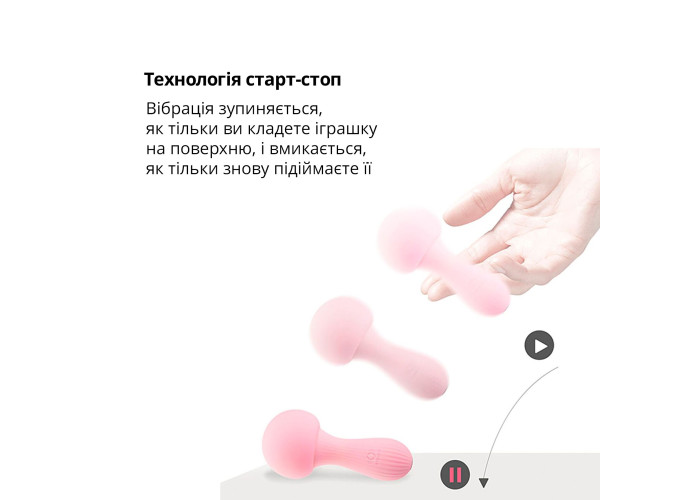 технологія «старт-стоп»: вібрація автоматично зупиняється, як тільки ви кладете іграшку на будь-яку поверхню, вмикається, як тільки знову підіймаєте її, і повністю вимикається, якщо не використовується понад 10 хвилин, так що після закінчення гри ви можете просто відкласти вібромасажер убік, навіть не натискаючи жодних кнопок;