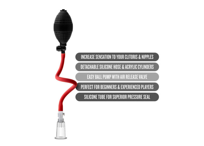 Ще більше задоволення під час пестощів клітора! Пропонуємо купити вакуумну помпу для клітора Blush Temptasia – Beginner's Clitoral Pumping System. Вона дарує приємні відчуття від вакууму та значно підвищує чутливість клітора. Приплив крові надає неймовірно збуджувальну дію, так що така помпа — прекрасний варіант для прелюдії! Підходить і для використання на сосках. Помпа механічна, вакуум створюється за допомогою груші, є кнопка моментального скидання вакууму.